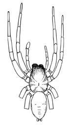 | Keywords: Drassodes.saccatus.mosaic.-.emerton.svg <br> Collected August 10 1906; general appearance of old female of large size with the abdomen shrivelled as in a female that has laid eggs The epigynum is complete and symmetrical as in a normal female The cephalothorax and abdomen are symmetrical and the 3rd and 4th legs are alike on both sides The right palpus is that of a female and the left that of a male with the palpal organ fully developed The 1st and 2nd legs of the left side are slightly longer than those of the right side the left mandible is thicker than the right and the claw slightly longer but the mandible is not elongated nor narrowed at the tip as it is in the male Kulczynski described in 1885 an Erigone fusca <small>Blackwall</small> now Oedothorax fuscus or Oreoneta brunnea with right female + left male side Epigynum was developed only on the right asymmetry extended to cephalothorax abdomen and spinnerets the legs however were symmetrical in length only difference being in those of the 1st pair which had the right tarsus like the female and the left like the male Psyche 14 40 1907 Creator James Henry Emerton 1930 Gynandromorphs Spider anatomy Drawings of animals by James H Emerton SVG anatomy Drassodes saccatus |