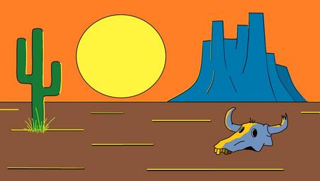 Keywords: drawing desert arizona texas cactus sun landscape arid animal skull panoramic dry horizon rocks sand nature sky orography calm
