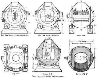 | Keywords: Drawings Shelby ball converter.png convertisseur Manhès-David sphérique de type Shelby ball utilisé à Cero de Pasco au Pérou en Drawings of the spherical Manhès-David converter Shelby ball type as used at Cero de Pasco Peru 1914 https //archive org/details/cu31924004606608 Metallurgy of copper p 307 Heinrich Oscar Hofman 1852-1924 other versions PD-old-70-1923 Manhès-David converters Uploaded with UploadWizard | ||||