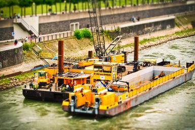 Keywords: dredgers excavators pebble excavator buckets water construction vehicle port sand construction machine water site backhoe bucket dredger fairway deepening expansion rhine düsseldorf river riverside work tilt shift wet bagger