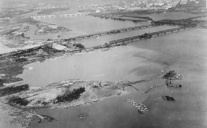 | Keywords: Dredging operations in Potomac River - 1930.jpg en Dredging operations in the Potomac River in Washington D C in the United States in 1930 The double-bridge in the center is the Highway Bridge later replaced and today known as the 14th Street Bridges Boot-shaped Columbia Island Arlington Memorial Bridge Theodore Roosevelt Island and Francis Scott Key Bridge are visible upstream to the left and top of the image Note the pontoons between Columbia Island the north span of Highway Bridge middle left They indicate the area to be filled with dredged material from the Potomac River to create what will eventually be called the Pentagon Lagoon and to narrow the outlet from Boundary Channel to the Potomac River This will also allow the Mount Vernon Memorial Parkway later named the George Washington Memorial Parkway to be built along the axis of Columbia Island cross the outlet channel and proceed south below the soon-to-be-replaced Highway Bridge Note the parallel pontoons in the lagoon south of Highway Bridge They indicate where dredged material from the Potomac River will be placed to allow the parkway to continue south The lagoon is the wide mouth of Roaches Run a creek in Virginia A large dredge can be seen tied up at the pier near the spit of land extending into the Potomac River Several barges to hold the material dredged up are also nearby http //www loc gov/pictures/item/va1677 photos 368605p/ Historic American Engineering Record Library of Congress 1930 File Washington-Hoover Airport - 1930 - with Gravelley Point jpg Columbia Island Potomac River 14th Street Bridge George Washington Memorial Parkway Arlington Memorial Bridge PD-USGov |