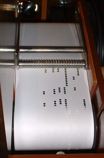 Keywords: DrehorgelLochkarte.jpg Description Music roll of a barrel organ in place inside the organ Each hole across the roll marks the position of a note As the roll passes over the note valves each hole allows air to pass through and sound one of the organ pipes Source photographed --Immanuel Giel 12 53 6 Jun 2005 UTC Barrel organs Music rolls Sequence controllers Punched tapes |