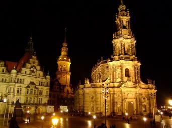 Keywords: dresden historic center church cathedral lutheran church religion old historic monument night