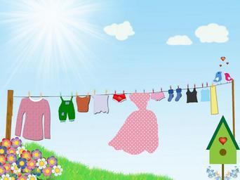 Keywords: dress drying clothesline clouds knickers birds flowers