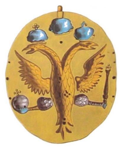 | Keywords: Drevnosti RG v1 ill023b.jpg ru Д евности Российского госуда ства Antiquities of Russian country 1846 1853 Т 1 Иллюст ато Солнцев Фёдо Г иго ьевич Об азок и к ест тельник п иписываемый Дмит ию Самозванцу а эстампе под 22 изоб ажены в нату альную величину 1 д евние складни; 2 тельной золотой к ест или тельник; 3 двуглавый о ел на золотой бляхе богато ук ашенной финифтью Все сии д агоценности х анятся у г афа усина-Пушкина и по п еданию п инадлежали Дмит ию Самозванцу а складнях оп авленных в золото с п ек асной финифтью изоб ажены искусной кистью в византийском стиле Богомате ь с П едвечным ладенцем и Святитель иколай не в саккосе как написан он на д евней иконе в Ба е но в к есчатой фелони и омофо е одной укой благословляющий а д угой де жащий Евангелие Ство чатые складни с ушками по-видимому назначены были для ношения на пе сях а четве очастном тельнике изоб ажен восьмичастный к ест без аспятого на нем Спасителя и без г ивны или цаты какая видна на с едок естии у подобных к естов XVII в ад к естом написано Ца ь Славы у концов его Icс Х ика у подножия Л Р Б т е «место лобное ай бысть» Как на лицевой так и на об атной сто оне вы езаны мелкой вязью слова ве оятно молитвы Если действительно этот к ест п инадлежал Лжедмит ию то можно бы его п изнать за тот самый кото ый он показал в Б агине Адаму Вишневецкому как будто данный ему к естным его отцом Иваном стиславским Что же касается до бляхи с двуглавым о лом увенчанным т емя ко онами без ездеца или всадника на г уди ве оятно она составляла ук ашение ца ской утва и 1846 1853 http //www runiverse ru/bookreader/book403605/ page/61/mode/1up Солнцев Фёдо Г иго ьевич PD-Art Antiquities of Russian country - Volume I Files uploaded by Shakko from various sources False Dmitriy I House of Musin-Pushkin Coats of arms of the Tsardom of Russia |