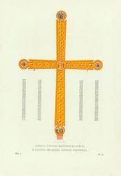 | Keywords: Drevnosti RG v1 ill029 - Korsynsky krest.jpg ru Д евности Российского госуда ства Antiquities of Russian country 1846 1853 Т 1 Иллюст ато Солнцев Фёдо Г иго ьевич Ста инные Ко сунские к есты и звездица Антония Римлянина Ко сунскими к естами называются зап естольные т и к еста в алта е московского Успенского собо а Один из них четы ехконечный обитый позолоченными се еб яными листами; лицевая сто она усеяна самоцветными каменьями и клеймами с об онными изоб ажениями азных святых а се едине и по концам в к угах наведены финифтью Распятие Деисус Благовещение и Воск есение а об атной сто оне поле ук ашено звездами из х усталей; на се едине и на концах в клеймах чеканные изоб ажения господских п аздников В пе еписных книгах московского Успенского собо а ск епленных в 1627 г Симоновским а химанд итом Иосифом впоследствии пат иа хом об этом памятнике благочестия сказано «За п естолом же к ест большой Ко сунский обложен се еб ом в пяти местех писаны господские п аздники мусиею на золотых цках; в нем же в гнездех сто семь х усталей» Д угие два к еста четы ехконечные из го ного х усталя ск епленные се еб ом; они утве ждены на д евках для ношения в к естных ходах а этих священных памятниках нет надписей кои бы свидетельствовали нам об их местности и д евности но п едание гласит что они пе енесены п осветителем России Владими ом I в столичный г ад Киев из поко енной им Ко суни оттуда пе ешли во Владими и потом в оскву О пе вом к есте свидетельствует книга Жезл 1655 г что он «п ед агоценный окладом неоцененный об азом д евностью п ечестный именуемый Ко сунский алта ь Господень яко солнце п освещает в собо ном х аме в мате и всех це квей» В 1812 г святыни сии не были вывозимы из осквы 1846 1853 http //www runiverse ru/bookreader/book403605/ page/61/mode/1up Солнцев Фёдо Г иго ьевич PD-Art Antiquities of Russian country - Volume I Files uploaded by Shakko from various sources Uploaded with UploadWizard Korsun cross Objects of Assumption Cathedral in Moscow |