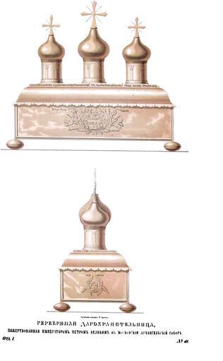 | Keywords: Drevnosti RG v1 ill062.jpg ru Д евности Российского госуда ства Antiquities of Russian country 1846 1853 Т 1 Иллюст ато Солнцев Фёдо Г иго ьевич Се еб яная да ох анительница поже твованная импе ато ом Пет ом Великим в московский А хангельский собо Да ох анительница сия или ковчег замечателен не столько вычу ностью и затейливостью аботы д агоценностью ук ашений какой отличаются д евние утва и сколько п остотой стиля и знаменитостью венценосного вкладчика если только можно заключить об этом из слов самой надписи Сиа свmтаm скинїm содtлана въ АB хангелськїй собо ъ что в ца ствuющемъ великомъ г адt п и де жавt Великаго Госuда m Ца m и Великаго Кнmзm Пет а Хотя скиния эта имеет вид г обницы с к ышкой однако она подобно це кви увенчана т емя главами а лицевой сто оне вы езана Тайная вече я над коей читаем Вече и Твоеm Тайныm а на об атной хе увим 1846 1853 http //www runiverse ru/bookreader/book403605/ page/61/mode/1up Солнцев Фёдо Г иго ьевич PD-Art Antiquities of Russian country - Volume I Files uploaded by Shakko from various sources Uploaded with UploadWizard Tabernacles from Russia Donations of Russian rulers to Church Peter I of Russia's items Objects of Cathedral of the Archangel in Moscow |