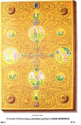 | Keywords: Drevnosti RG v1 ill084.jpg ru Д евности Российского госуда ства Antiquities of Russian country 1846 1853 Т 1 Иллюст ато Солнцев Фёдо Г иго ьевич Лицевая сто она оклада Евангелия ца ицы аталии Ки илловны Д агоценнейшее по мате иалам великолепнейшее по ук ашениям п ек асное по художеству сие Евангелие единственное в своем оде высотой 1 1/4 а шин ши иной 11 ве шков Оно напечатано на большой александ ийской бумаге евангельскими буквами в оскве в 1689 г Заставки в заглавиях заменяются миниатю ами писанными искусной кистью каймы по листам к угом асцвечены к асками с золотом Изоб ажения четы ех евангелистов отличаются п авильностью и тве достью исунка блеском коло ита Так как в числе ца ских иконописцев находились тогда усские и чужест анные живописцы то с достове ностью можно полагать что сии миниатю ы их п оизведение о оклад нес авненно п евосходит богатством и великолепием д агоценных ук ашений оскошную печать св книги; с обеих сто он он золотой По ве хней его доске наложены ко оны цветы т авы и узо ы из алмазов изум удов и яхонтов с финифтью между коими на семи больших изум удах вы езаны об онной аботой лики Господа Вседе жителя Богомате и П едтечи и четы ех евангелистов Вся пове хность лицевой доски столь оскошно усеяна д агоценными камнями что они сливаются как бы в одну массу а об атной доске наведены финифтью по золоту лики азных святых По к аям оклада вы езана следующая надпись «Во славу Всетво ца Господа Бога и в честь П ечистые Девы Бого одицы а ии Благочестивейшие Великие Госуда и Ца и и Великие Князи Иоанн Алексеевич и Пет Алексеевич всея Великие и алые и Белые России Самоде жцы и многих госуда ств и земель восточных и западных и севе ных отчичи и дедичи и наследники и госуда и и обладатели и повелители в 12 лето ца ства их и мати их благочестивая Великая Госуда ыня благове ная Ца ица и Великая Княгиня аталия Ки илловна в Богожеланном своим ца ским усе дии изволиша сие святое Евангелие Иисус Х истово напечатанное уст оити из ядным художеством и ук асити от своих ца ских сок овищ п евеликим иждивением златом и д агим камением п и благо однейшем Великом Госуда е Цеса евиче и Великом Князе Алексие Пет овиче всея Великие и алые и Белые России на 4 году воз аста его и уст оя повелеша оное отдать в великую собо ную Це ковь Успения П есвятые Богомате и п и Великом Господине Святейшем Ки Анд иане А хиепископе осковском и всея России и всех севе ных ст ан Пат иа хе в ца ствующем великом и п еславном г аде оскве ми оздания 7202 от воплощения же Бога слова Иисус Х иста 1693 года месяца Декемв ия в 25 день» В емя уст оения сего нап естольного Евангелия совпадает с путешествием юного Пет а в А хангельск куда не хотела отпускать заботливая мать его для пе вого мо ского путешествия Ве оятно это было обетным ее п иношением дому П есвятой Бого одицы о сох анении сына ее В ца ствование Екате ины II Евангелие это было возобновлено ук ашениями и в таком виде сох анилось до наших в емен как священный и д агоценный памятник ца ского благочестия В х амовый п аздник и в день ко онования госуда ей оссийских оно выносится двумя диаконами на малом выходе 1846 1853 http //www runiverse ru/bookreader/book403605/ page/61/mode/1up Солнцев Фёдо Г иго ьевич PD-Art Antiquities of Russian country - Volume I Gospel Books covers from Russia Files uploaded by Shakko from various sources Uploaded with UploadWizard 1689 books Natalia Kirillovna Naryshkina Objects of Assumption Cathedral in Moscow Donations of Russian rulers to Church |