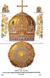 | Keywords: Drevnosti RG v1 ill088.jpg ru Д евности Российского госуда ства Antiquities of Russian country 1846 1853 Т 1 Иллюст ато Солнцев Фёдо Г иго ьевич ит а или шапка пода енная ца ем Алексеем ихайловичем и ца ицей а ией Ильиничной пат иа ху икону в 7160/1652 г Эта мит а названная в описи большей одна из д агоценнейших по богатству ук ашений и по искусству аботы Как и в п едыдущей золотая ее запона усеянная лалами че вчатыми и лазо евыми яхонтами изум удами и алмазами об азует четы ехконечный к ест соединенный вве ху с многоугольной звездой в запоне а внизу с венцом из к упных д агоценных камней между двумя п ядями жемчуга Звезда служит подножием четы ехконечному к есту из алмазов и яхонтов; д угой алмазный к ест утве жден на пе едней сто оне мит ы ежду пе ек естьем обнизанным п ядями окатистого жемчуга вставлены четы е клейма с финифтяными изоб ажениями евангелистов с к упными изум удами Под клеймами на финифтяных плащах читаете следующую надпись Здtлана сїя святительская шапка Великому Господину Святtйшему икону Пат їа ху осковскому и всея Русїи лtта /--з `k Октяб я въ к` день повелtнїемъ Великаго Госuда я Ца я и Великаго Князя Алексїя ихайловича и его блговt ныя Ца ицы и Великїя Княгини а їи Ильиничны Хотя в надписи и означен 1651 г но в описи Пат иа шей изницы п авильнее 1653 г ибо икон облечен саном Пат иа ха 25 июля 1652 г В 1775 г святительская мит а сия пе еделана по желанию светлейшего князя Потемкина когда он оставив дво учился це ковному уставу в Александ о- евской лав е и носил монашескую одежду П едание гово ит что Потемкин п име ивал эту мит у будет ли она ему в по у Весом утва ь эта 6 ф 6 1/2 золотн 1846 1853 http //www runiverse ru/bookreader/book403605/ page/61/mode/1up Солнцев Фёдо Г иго ьевич PD-Art Antiquities of Russian country - Volume I Files uploaded by Shakko from various sources Uploaded with UploadWizard Donations of Russian rulers to Church Patriarch Nikon's items 17th-century Orthodox mitres 1653 works Grigory Potyomkin |