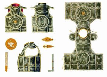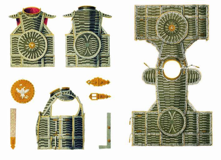| Keywords: Drevnosti RG v3 ill044-45 - Zertsalo Alex.Mikh.jpg en Mirror armour ru Зе цало ца я Алексея ихайловича а исунке подпись «Ца я Алексея ихайловича» но собственно ца ское зе цало изоб ажено на исунках 47 52 Зе цало же с долами отмечено в пе еписной книге ца ской О ужейной казны 1687 г лист 500 следующим об азом «Зе цало железные с долами че ез дол золочено и че ез дол помалевано на них пос еди о лы медные литые золоченые; воо ужены на кольцах железных бах ама шолк был к асной п яшки медные; подложены зе цала до огами к асными А по нынешней пе еписи ч`є года и по осмот у то зе цало п отив п ежних пе еписных книг сошлось во многих местех попо чены; цена двести ублев а в п ежних пе еписных книгах написано десятое» Д евности Российского госуда ства http //john-petrov livejournal com/1190678 html Солнцев Фёдо Г иго ьевич < 1853 PD-old Antiquities of Russian country - Volume III Zertsalo Alexis I of Russia's items |