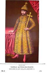 | Keywords: Drevnosti RG v4 ill008.jpg ru Д евности Российского госуда ства Antiquities of Russian country 1846 1853 Том 4 Иллюст ато ru Солнцев Фёдо Г иго ьевич Одежда ца ская XVII в Изоб ажение ца я Федо а Алексеевича П иложенные здесь два по т ета ца я Федо а Алексеевича во весь ост писаны один масляными к асками на холсте высотой 3 а шина без 2 ве шков ши иной 1 а шин 8 1/2 ве шка д угой яичными к асками по левкасу на доске Пе вый х анится в московской О ужейной палате; вто ой в московском А хангельском собо е ис 12 а обо оте пе вого по холсту написано че нилами «Ца ь Федо Алексеевич» а изоб ажении виден возмужалый ца ь с длинными п ямыми усами и небольшой густой бо одой полный жизни и силы тогда как по свидетельству сов еменников Федо а «от самой юности он был слаб и асст оен здо овьем» что даже альгин в «Зе цале оссийских госуда ей» отличает сего ца я названием Чахлого или Чахотного Окладом лица Федо не похож на д угое изоб ажение здесь п иложенное; костюмами своими они также азнятся между собой а нем кафтан с до огами и поясом усеянный д агоценными камнями; на подоле с левой сто оны у кафтана п о амка или шнитц Утва ь сия как видно богатейшая из х анившихся на Казенном дво е Голова ца я ук ашена двойной ко оной с к естом наве ху; на пальцах одной уки два а на вто ой т и пе стня какие надевали госуда и в больших выходах Во внешнем его облике вы ажается ца ское величие и сановитость Левой укой он опи ается на стол пок ытый тканью к асного цвета а в п авой де жит четы ехконечный к ест с каким изоб ажаются византийские импе ато ы в знак ве ности своей Иисусу Х исту Из п име а великого князя Всеволода Ю ьевича обна уживается что великие князья наследникам своим в учали к ест и меч Так поставляя ста шего своего сына Константина на княжение в овго од он в учил ему честный к ест и меч со следующими словами пе еданными нам в летописи «Се ти буди сх анник а мечь п ещенье и опасенье» П и то жественных случаях и выходах де жавцы Русской земли являлись с к естом не только на пе сях но и в уке как залогом непобедимые победы о ужием ми а и вместе напоминанием о п исяге союзников под учников и подданных кото ые им целовали к ест П име ы тому найдем в событиях отечественной исто ии и лицевых изоб ажениях Так ослепленный Василько в 1099 г явился на поле битвы с к естом в уках «Клятвоп еступник воскликнул он к Святополку видишь ли мстителя Святый к ест да будет между нами судиею » С к естом Василий Шуйский вско е после уме щвления Самозванца в 1606 г 5 вступил в К емль а ца ь Алексей ихайлович из Литовского похода имел также то жественное шествие в оскву как победитель с к естом в уке с каким он изоб ажен на сов еменном ему по т ете в санкт-пете бу гской Романовской гале ее С к естом в уках написаны на стенах це ковных и на д евних по т етах великие князья и ца и К на яду ца я п инадлежат к асные ост оносые сапоги ве оятно из хуза или сафьяна; подобные видны на князьях на миниатю ной ка тине Святославова «Избо ника» Как в доличном так особенно в лицевом выказывается ловкость и от аботка кисти художника по-видимому иност анца Что же касается движения то как гово ят живописцы «фигу а не стоит» Из дел о ца ских зог афах XVII века отк ывается что иногда лицевое писал один художник а доличное д угой азличие п иемов заметно и в этом по т ете Хотя по новым описям О ужейной Палаты сей по т ет изоб ажает ца я Федо а Алексеевича но по сличению его с