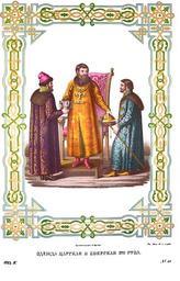 | Keywords: Drevnosti RG v4 ill013.jpg ru Д евности Российского госуда ства Antiquities of Russian country 1846 1853 Том 4 Иллюст ато ru Солнцев Фёдо Г иго ьевич Одежда ца ская и боя ская XVII в Ба он ейе бе г бывший в качестве посла от немецкого импе ато а к ца ю Алексею ихайловичу описал в своем путешествии п ием свой п и оссийском дво е Ве ные снимки с исунков к его описанию х анившихся в Д езденской ко олевской библиотеке изданы г Аделунгом в Санкт-Пете бу ге в 1827 г на иждивение г афа П Румянцева Здесь восп оизведен академиком Солнцевым один из этих исунков п едставляющий ч езвычайную частную аудиенцию посла 24 ап еля 1662 г Ца ь изоб ажен в ца ской своей утва и и в то самое мгновение когда он готовится пить за зд авие де жавного б ата своего цеса я Леопольда Из уважения к его имени он п ивстал со своего ца ского стула и сняв шапку левой укой подает ее стоящему п ед ним стольнику князю ихайле Долго укову а п авой п инимает зазд авный кубок от стольника князя Ивана Алексеевича Во отынского а частной аудиенции ца ь одет был в на яде вто ом или т етьем; на нем фе езея из золотных тканей подбитая мехом с меховым оже ельем и т емя петлицами; на г уди у него к ест Шубы у п едстоящих ему стольников с отложным во отником а исподний кафтан с козы ем Сколько великолепен был т он на пе вой аудиенции столько п ост стул с низкой подножкой на частной Чтобы дать понятие о на яде ца я на пе вой аудиенции цеса ским послам 20 мая 1661 г мы здесь п едставим для сличения два описания одно помещенное у Пет ея а д угое из Выходных книг «Великий Князь замечает шведский посол имел на голове небольшую соболью шапку на кото ую надета золотая ко она вве ху к естооб азно сомкнутая и ук ашенная множеством д агоценных камней платье его из золотой па чи подбито алым ба хатом; оно все пок ыто богатою нашивкою из к упного жемчуга наподобие д евесных листьев Вок уг всего платья а авно и на укавах кайма ши иною в одну четве ть локтя сплошь унизана п ек аснейшим жемчугом и д агоценными камнями Све х кафта-на надет у него вок уг шеи ши окий ниже плеч спускающийся богатый во отник из самого к упного жемчуга и д агоценных камней а г уди у него золотой к ест длиною в четве ть локтя а толщиною в два пальца; на всех пе стах у него множество больших колец и пе стней Сапоги его низаны жемчугом» В Выходных книгах так описан на яд ца я п и этой же самой аудиенции « а Госуда е был на яд большие казны к ест диадима вто аго на яду чепь золота колчата платно ца ское ба хат аксамитной золотой петельчат кафтан Ца ской становой отлас виницейский золотой по зеленой земли; тесьма шапка Ца ская вто аго на яду с изум удом яблоко с стоянцем скипет Ца ской» 1846 1853 http //www runiverse ru/ Солнцев Фёдо Г иго ьевич PD-Art Antiquities of Russian country - Volume IV Files uploaded by Shakko from various sources Uploaded with UploadWizard Russian boyars Alexis I of Russia in history paintings House of Dolgorukov House of Vorotynskiy |