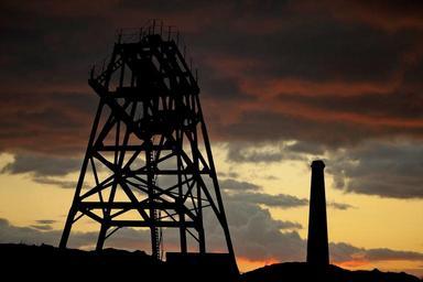 Keywords: drilling tower chimney factory building red sky clouds sunset oil rig oil derrick drilling rig landscape scenery