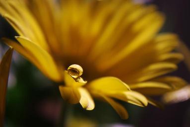 Keywords: drop of water drip flower gerbera plant rain run off close macro water leaf raindrop droplets lighting yellow transparent beaded