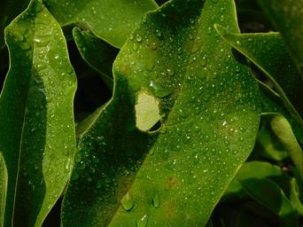Keywords: drop of water raindrop drip close leaves hole in the sheet bush wet green after the rain dew