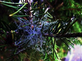 Keywords: drops drop macro web water-drop raindrop detailed nature tree needles forest