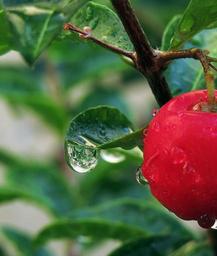 Keywords: drops rain drops reflection nature leaf colorful fruit