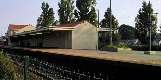 Keywords: 38 08S 145 51E Drouin railway station is located on the Orbost line in Victoria, Australia. It serves the town of Drouin. Opened 1 March 1878. attribution: Brad F 89