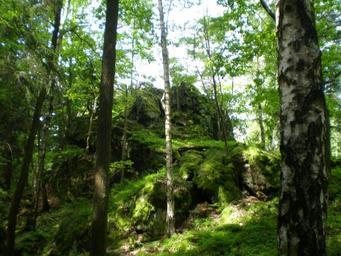 Keywords: Dršťka 1.JPG cs Skalní útvary v blízkosti bývalého hradu Dršťka v údolí Skořického potoka v Brdech own Brdy-res publica 2008-06-24 Palcíř Rocks in the Czech Republic
