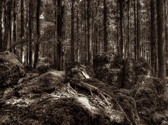 Keywords: druid grove forest root tree root national park overgrown nature shadow moss