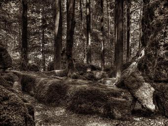 Keywords: druid grove forest root tree root national park overgrown nature shadow moss