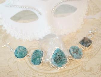 Keywords: drusy druzy crystal agate gemstone gems stones semiprecious jewelry jewel cabochon blue green bracelet handmade setting cabs display fashion vintage
