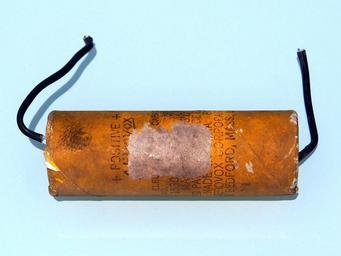 Keywords: Dry Electrolytic capacitor, pic2.JPG Photographed at Radio Relay Station Former USAF microwave relay station ACE-High system at Lefkada Greece own 2014-06-05 10 19 37 Alf van Beem CC-Zero Electrolytic capacitors