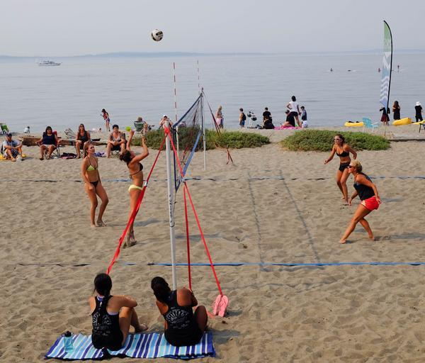Keywords: outdoor sport court game Beach volleyball at Alki Beach in West Seattle. Beach volleyball at Alki Beach in West Seattle.