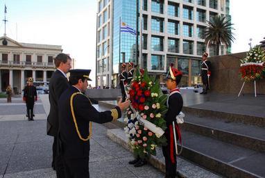 | Keywords: ambassador nelson credentials protocol outdoor Following the presentation of his credentials to Uruguay President Tabare Vazquez, Ambassador David D. Nelson laid a wreath in honor of Uruguay's founding father, General Jose Artigas, at his monument located in Montevideo's Plaza Independencia. [U.S. Embassy photo by Vince Alongi / Copyright info] Following the presentation of his credentials to Uruguay President Tabare Vazquez, Ambassador David D. Nelson laid a wreath in honor of Uruguay's founding father, General Jose Artigas, at his monument located in Montevideo's Plaza Independencia. [U.S. Embassy photo by Vince Alongi / Copyright info] |