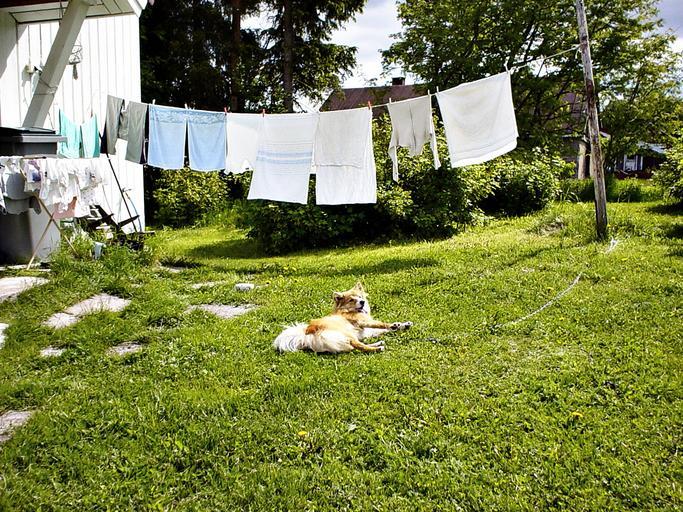 Keywords: dog laundry summer grass outdoor garden yard plant