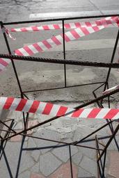 Keywords: red_white redwhite tape guard_rails guardrails dont_go dontgo gray lines asphalt chaotic discord outdoor abstract