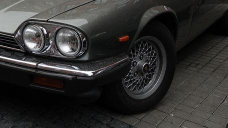 Keywords: cropped heavily_cropped heavilycropped jag jaaag jaguar xjs spokes spoke_wheel spokewheel car gray headlight headlights shadow tire rim wheel vehicle lines indoor