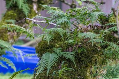 Keywords: home outdoor Moss and ferns growing on apple tree branch. Moss and ferns growing on apple tree branch.