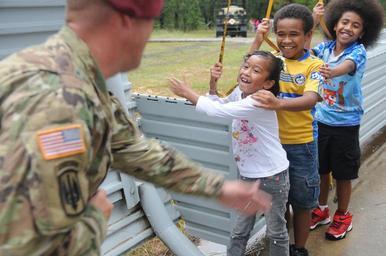 | Keywords: molly pitcher mollypitcher red leg redleg divarty airborne artillery m777a2 m119a3 family frg 82nd airborne division 82ndairbornedivision mass the fire massthefire himars high mobility rocket system highmobilityrocketsystem 82nd abn divarty. 82ndabndivarty Suzanna Volavola and her brothers learn about jump commands in a mock door exercise from an 82nd Airborne Division Artillery Paratrooper during the Molly Pitcher Day celebration on Fort Bragg, N.C., September 26. (Capt. Joe Bush, 82nd Airborne DIVARTY/ Released.) Suzanna Volavola and her brothers learn about jump commands in a mock door exercise from an 82nd Airborne Division Artillery Paratrooper during the Molly Pitcher Day celebration on Fort Bragg, N.C., September 26. (Capt. Joe Bush, 82nd Airborne DIVARTY/ Released.) |
