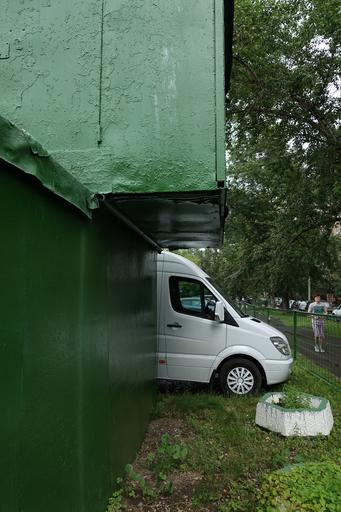 Keywords: green car white_on_green whiteongreen geometry person man outdoor