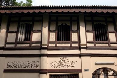 | Keywords: masjid hajjah fatimah mosque singapore kampong glam beach road public domain publicdomain outdoor Painted in brown and cream colours, the mosque is a unique blend of both Malaccan style and European classical elements. Its key elements include the entrance gate, the minaret tower, the ablution area, the prayer hall, the mausoleum, a garden and the imam's residence. Next to the mosque are ancillary buildings. infopedia.nl.sg/articles/SIP_259_2005-01-06.html Painted in brown and cream colours, the mosque is a unique blend of both Malaccan style and European classical elements. Its key elements include the entrance gate, the minaret tower, the ablution area, the prayer hall, the mausoleum, a garden and the imam's residence. Next to the mosque are ancillary buildings. infopedia.nl.sg/articles/SIP_259_2005-01-06.html |