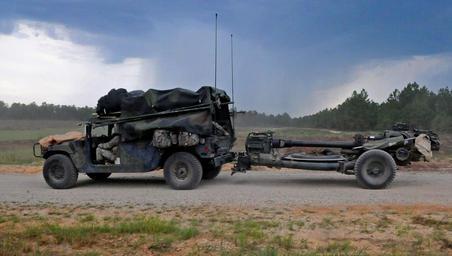 | Keywords: usa usarmy artillery 82nd airborne division 82ndairbornedivision 82nd airbornedivarty 82ndairbornedivarty airborne airborne field artillery airbornefieldartillery m119a3 redleg divarty field outdoor car vehicle An M-119A3 Light Towed Howitzer assigned to 2nd Battalion, 319th Airborne Field Artillery Regiment, 82nd Airborne Division Artillery is pulled by its prime mover, an M-998 Humvee, into position to conduct an emergency fire mission during the Division Artillery Readiness Test on Fort Bragg, North Carolina, 21 July. The DART is conducted to ensure the battery is ready to assume mission as part of the Global Response Battalion, capable of deploying anywhere in the world within 96 hours. (Capt. Joe Bush, 82nd Airborne DIVARTY/ Released.) An M-119A3 Light Towed Howitzer assigned to 2nd Battalion, 319th Airborne Field Artillery Regiment, 82nd Airborne Division Artillery is pulled by its prime mover, an M-998 Humvee, into position to conduct an emergency fire mission during the Division Artillery Readiness Test on Fort Bragg, North Carolina, 21 July. The DART is conducted to ensure the battery is ready to assume mission as part of the Global Response Battalion, capable of deploying anywhere in the world within 96 hours. (Capt. Joe Bush, 82nd Airborne DIVARTY/ Released.) |