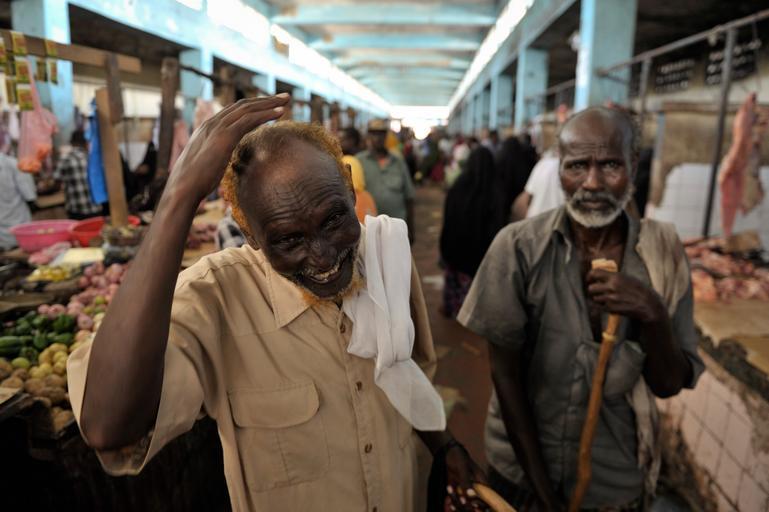 | Keywords: amisom au eid hamar weyne hamarweyne ist market mogadishu somalia hamaweyne preparations Two Somali men stand in Mogadishu's Hamar Weyne meat market on October 3, ahead of Eid al-Adha. AMISOM Photo / Tobin Jones Two Somali men stand in Mogadishu's Hamar Weyne meat market on October 3, ahead of Eid al-Adha. AMISOM Photo / Tobin Jones |