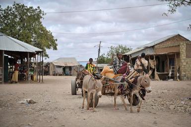 | Keywords: vehicle outdoor animal sport riding Two boys carry water on the back of their donkey carts in the town of Garbaharey. AMISOM Deputy Force Commander, Major General Geoffrey Baraba Muheesi, and Sector Commander, Brig. General Gebremedhin Fikadu, visited Garbaharey town in the Gedo region of Somalia on June 21. AMISOM Photo / Tobin Jones Two boys carry water on the back of their donkey carts in the town of Garbaharey. AMISOM Deputy Force Commander, Major General Geoffrey Baraba Muheesi, and Sector Commander, Brig. General Gebremedhin Fikadu, visited Garbaharey town in the Gedo region of Somalia on June 21. AMISOM Photo / Tobin Jones |