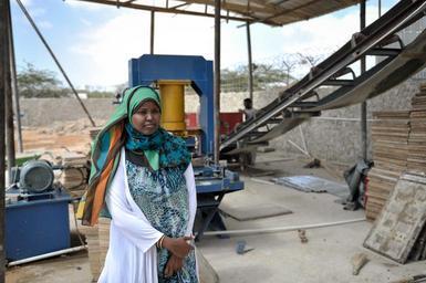 | Keywords: outdoor Naema Adam, who began a brick making business in Mogadishu, stands in her factory in the Somali capital on January 20. AU UN IST PHOTO / Tobin Jones Naema Adam, who began a brick making business in Mogadishu, stands in her factory in the Somali capital on January 20. AU UN IST PHOTO / Tobin Jones |