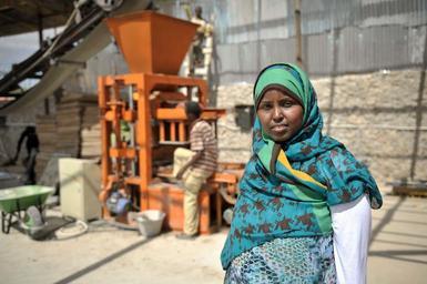 | Keywords: people Naema Adam, who began a brick making business in Mogadishu, stands in her factory in the Somali capital on January 20. AU UN IST PHOTO / Tobin Jones Naema Adam, who began a brick making business in Mogadishu, stands in her factory in the Somali capital on January 20. AU UN IST PHOTO / Tobin Jones |