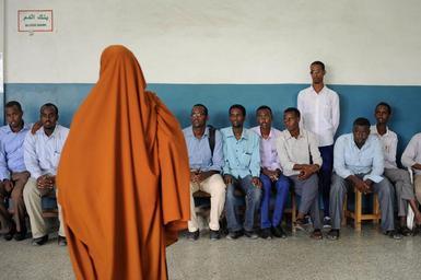 | Keywords: University students listen to Dr. Lul ahamud Mohamed, a doctor at Banadir hospital, before receiving an HIV test on World Aids Day in the Somali capital of Mogadishu on December 1. AMISOM Photo / Tobin Jones University students listen to Dr. Lul ahamud Mohamed, a doctor at Banadir hospital, before receiving an HIV test on World Aids Day in the Somali capital of Mogadishu on December 1. AMISOM Photo / Tobin Jones | ||||