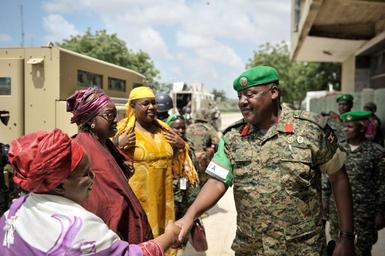 | Keywords: outdoor Congolese activist, Julienne Lusenge, shakes hands with an African Union soldier in Mogadishu, Somalia, on November 27. The Special Envoy on Women, Peace and Security of the Chairperson of the African Union Commision, Bineta Diop, is currently in Somalia on a three day visit in which she will meet with both government and African Union officials to discuss women's issues in the country. AMISOM Photo / Tobin Jones Congolese activist, Julienne Lusenge, shakes hands with an African Union soldier in Mogadishu, Somalia, on November 27. The Special Envoy on Women, Peace and Security of the Chairperson of the African Union Commision, Bineta Diop, is currently in Somalia on a three day visit in which she will meet with both government and African Union officials to discuss women's issues in the country. AMISOM Photo / Tobin Jones |