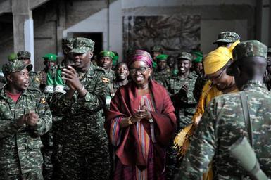 | Keywords: people The Special Envoy on Women, Peace and Security of the Chairperson of the African Union Commision, Bineta Diop, dances with African Union soldiers at Mogadishu Stadium in Somalia on November 27. The Special Envoy on Women, Peace and Security of the Chairperson of the African Union Commision, Bineta Diop, is currently in Somalia on a three day visit in which she will meet with both government and African Union officials to discuss women's issues in the country. AMISOM Photo / Tobin Jones The Special Envoy on Women, Peace and Security of the Chairperson of the African Union Commision, Bineta Diop, dances with African Union soldiers at Mogadishu Stadium in Somalia on November 27. The Special Envoy on Women, Peace and Security of the Chairperson of the African Union Commision, Bineta Diop, is currently in Somalia on a three day visit in which she will meet with both government and African Union officials to discuss women's issues in the country. AMISOM Photo / Tobin Jones |