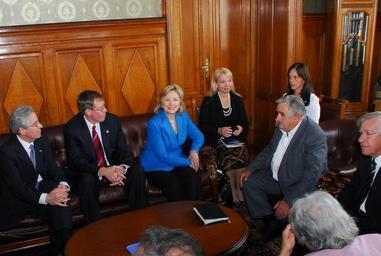 | Keywords: visdip clinton mujica uruguay indoor Secretary of State Hillary Clinton meets with Uruguayan President-elect José Mujica and Vice President-elect Danilo Astori, a few hours before the Inauguration Ceremony. Also in the meeting are: U.S. Ambassador to Uruguay David Nelson, Assistant Secretary Arturo Valenzuela, Uruguayan Ambassador to the U.S. Carlos Gianelli, and future First Lady, Senator Lucía Topolansky. [State Department photo by Vince Alongi / Public Domain] Secretary of State Hillary Clinton meets with Uruguayan President-elect José Mujica and Vice President-elect Danilo Astori, a few hours before the Inauguration Ceremony. Also in the meeting are: U.S. Ambassador to Uruguay David Nelson, Assistant Secretary Arturo Valenzuela, Uruguayan Ambassador to the U.S. Carlos Gianelli, and future First Lady, Senator Lucía Topolansky. [State Department photo by Vince Alongi / Public Domain] |