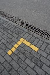 Keywords: geometry rather_minimal ratherminimal pavement paving gutter asphalt yellow yellow_on_gray yellowongray lines minimalism diagonal outdoor pattern abstract