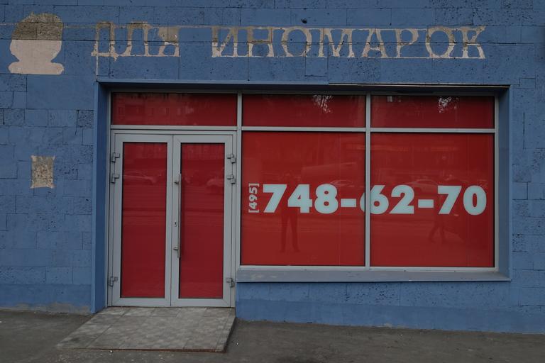 Keywords: for_sale forsale sign paint blue red wall window phone_number phonenumber ad cropped text signboard street sign architecture door abstract outdoor