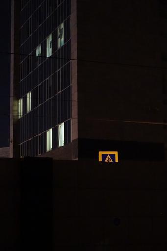 Keywords: sign dark crosswalk building windows cropped