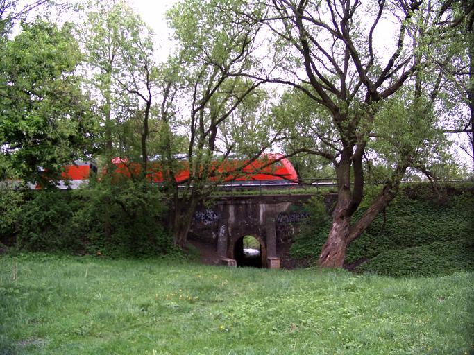Keywords: DSCF0153-EBB-pankeauf.JPG de Die Panke fließt von Bernau nach Berlin-Friedrichstraße durch urbanes Gebiet viele Brücken verbinden die getrennten Ufer und einen was zusammengehört Die Stettiner Bahn quert mehrfach die Panke Diese Eisenbahnbrücke in Zepernick südlich von Schönow existiert augenscheinlich seit dem Bau der Bahnstrecke own Boonekamp 52 39 56 N 13 32 58 E region DE-BE_heading 015 Panke in Zepernick