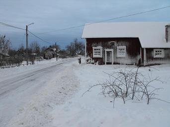 Keywords: DSCF0313-1.jpg en Elinge by sv Elinge by own Karlmathias Wooden buildings in Uppland Buildings in Tierp Municipality Snowy roads in Sweden Villages in Sweden